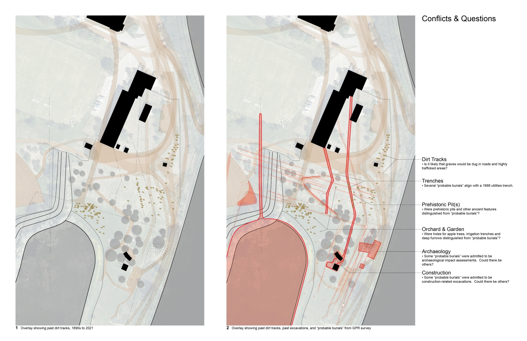 Given that the apple orchard is deeply textured by centuries human activity, how can it be said that Dr. Beaulieu’s targets are more “probably” graves than probably other features of human activity?