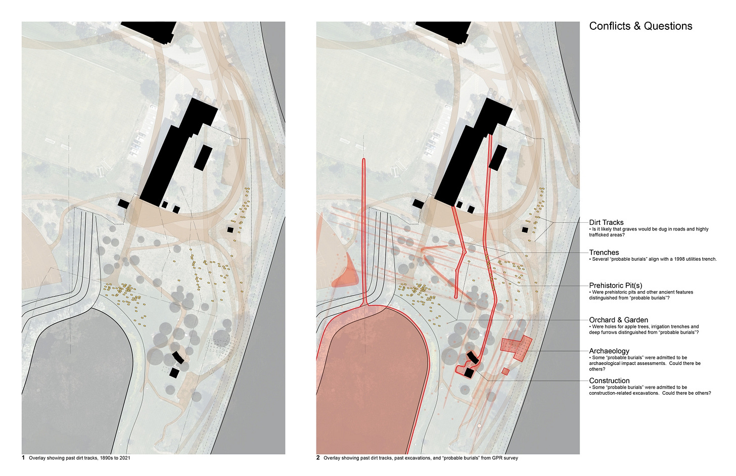 When Dr. Beaulieu used GPR to scan the orchard in May of 2021, she was scanning a site heavily disturbed by centuries of human activity. Nevertheless, Beaulieu confidently claimed that 215 “probable burials” had been discovered.